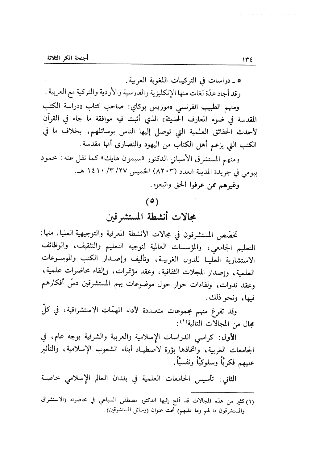 الأول: كراسي الدراسات الإسلامية العربية والشرقية بوجه عام، في الجامعات الغربية، واتخاذها بؤرة لاصطياد أبناء الشعوب الإسلامية، والتأثير عليهم فكرياً وسلوكياً ونفسياً.