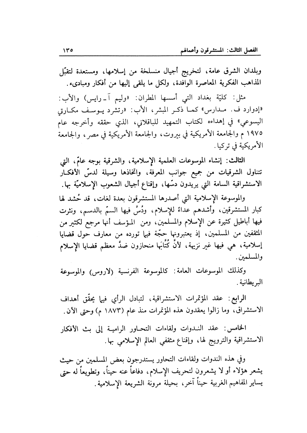 الثالث: إنشاء الموسوعات العلمية الإسلامية، والشرقية بوجه عام، التي تتناول الشرقيات من جميع جوانب المعرفة، واتخاذها وسيلة لدس الأفكار الاستشراقية السامة التي يريدون دسها، وإقناع أجيال الشعوب الإسلامية بها.