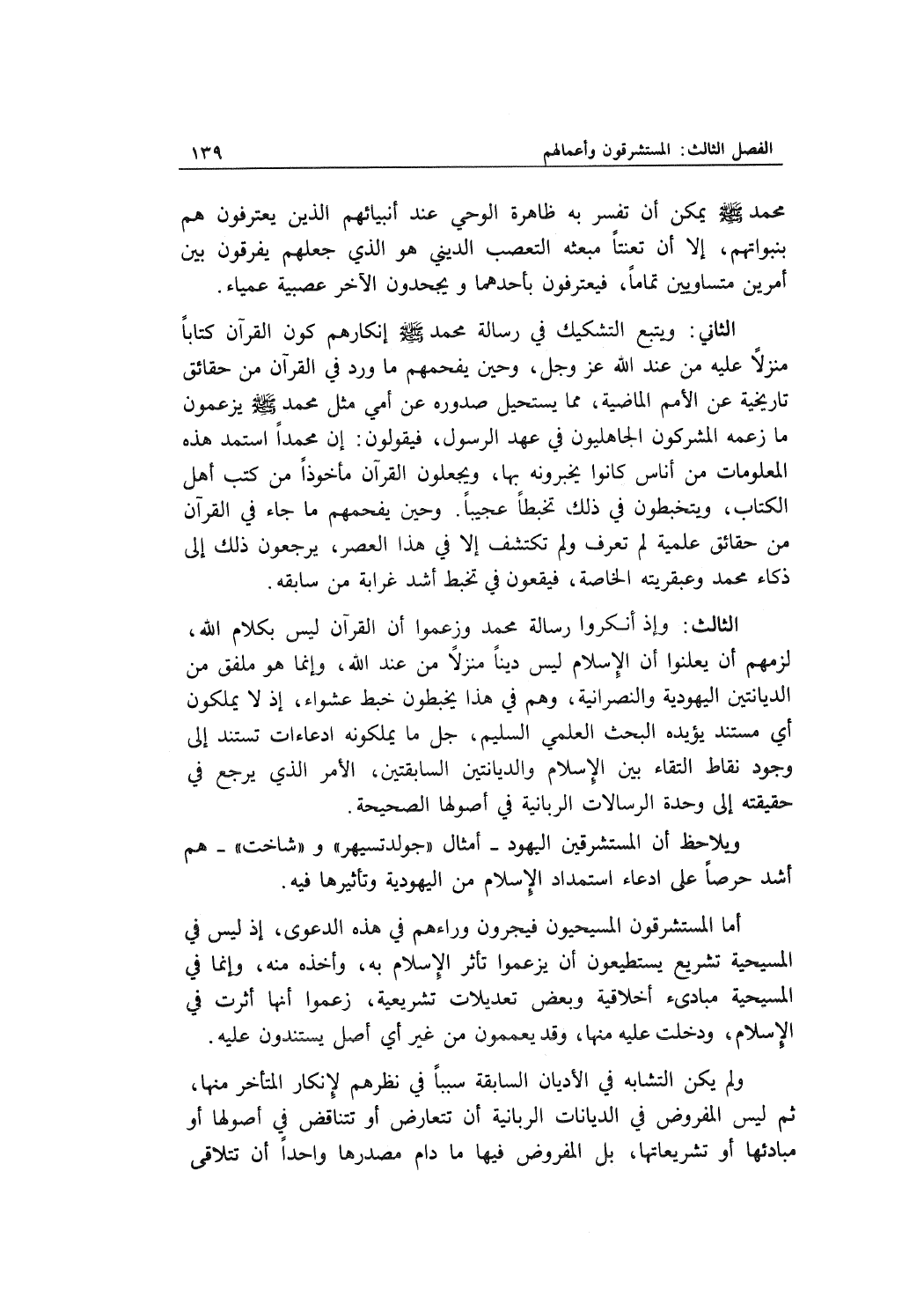 ولم يكن التشابه في الأديان السابقة سبباً في نظرهم في إنكار المتأخر منها، ثم ليس المفروض في الديانات الربانية أن تتعارض أو تتناقض في أصلوها أو مبادئها أو تشريعاتها، بل المفروض فيها ما دام مصدرها واحداً أن تتلاقى