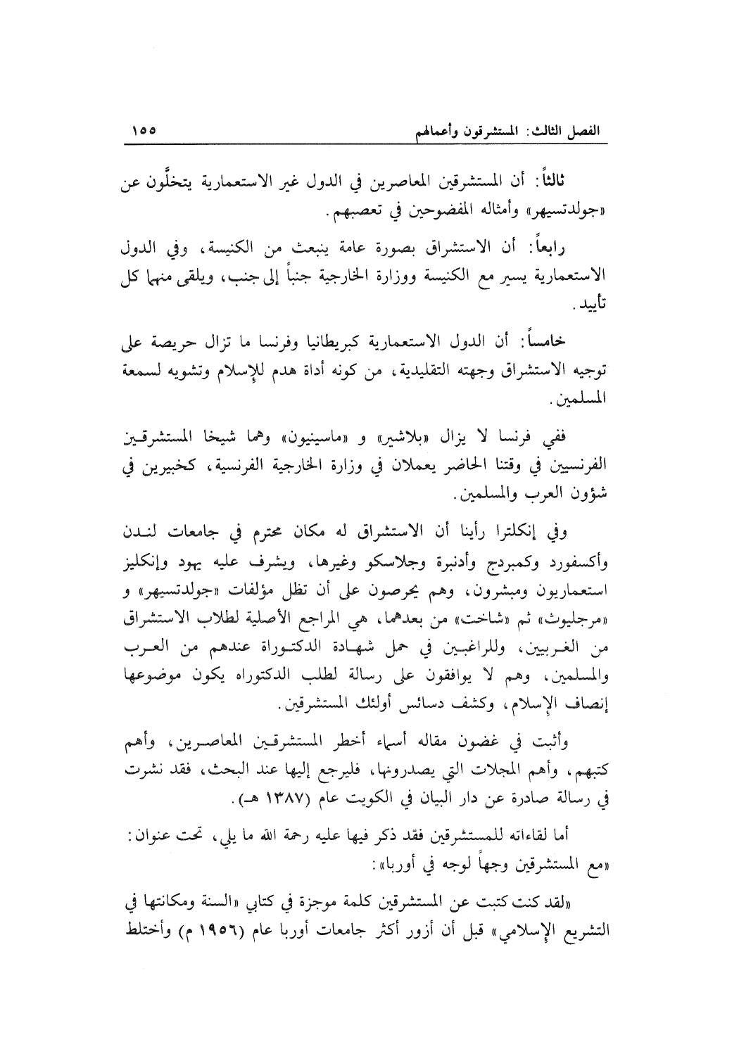 ثالثاً: أن المستشرين المعاصرين في الدول غير الاستعمارية يتخلون عن "جولدتسيهر" وأمثاله المفضوحين في تعصبهم.