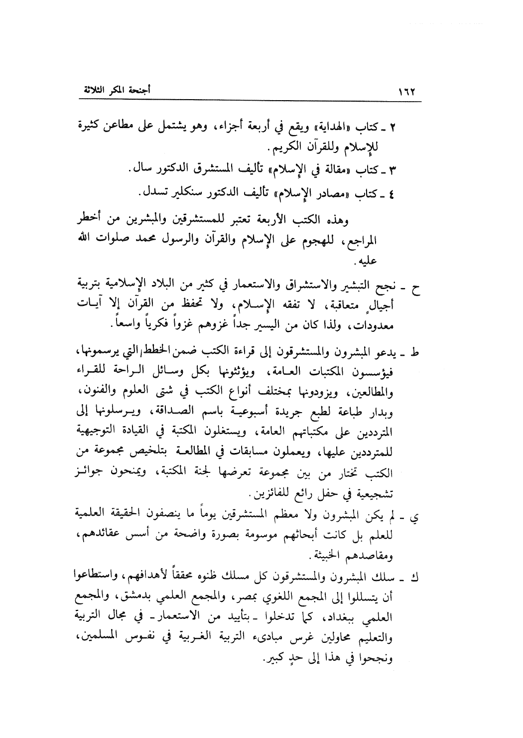 ي- لم يكن المبشرون ولا معظم المستشرقين يوما ما ينصفون الحقيقة العلمية للعلم بل كانت أبحاثهم موسومة بصورة واضحة من أسس عقائدهم، ومقاصدهم الخبيثة.