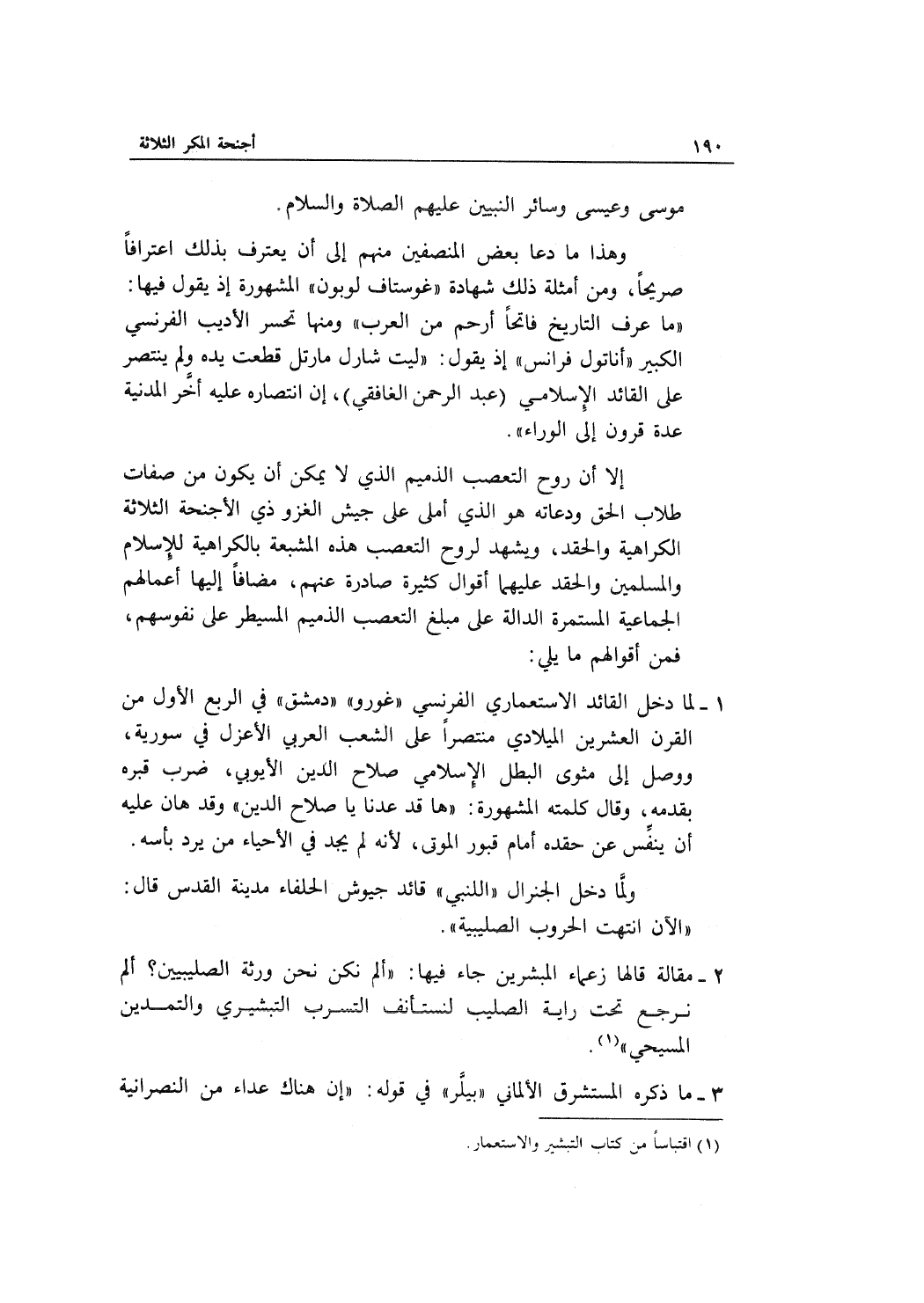 2- مقالة قالها زعماء المبشرين جاء فيها: "ألم نكن نحن ورثة الصليبيين؟ ألم نرجع تحت راية الصليب لنستأنف التسرب التبشيري والتمدين المسيحي"