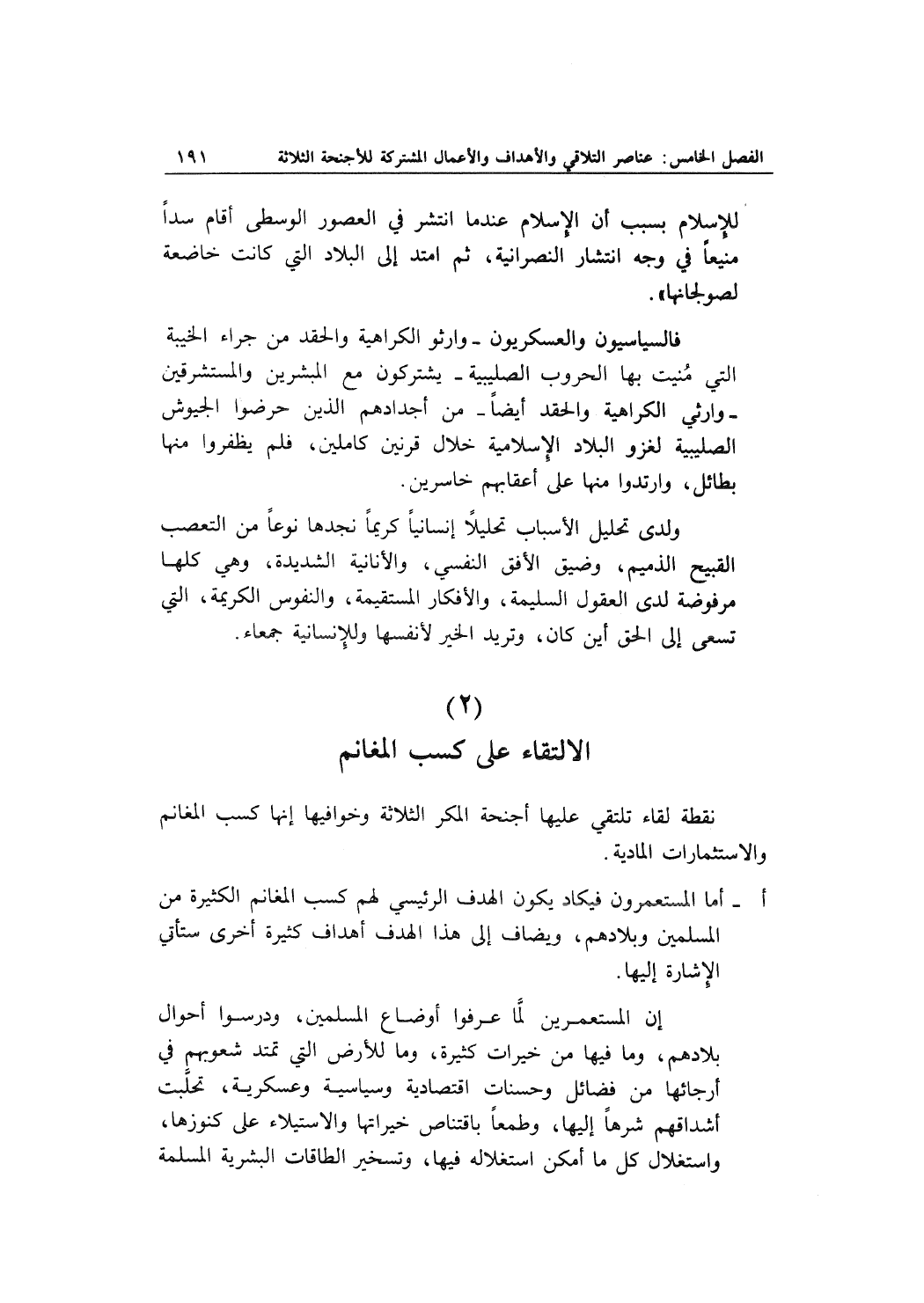 فالسياسيون والعسكريون _ وارثوا الكراهية والحقد من جراء الخيبة التي منيت بها الحروب الصليبية _ يشتركون مع المبشرين والمستشرقين _ وارثي الكراهية والحقد أيضا _ من أجدادهم الذين حرضوا الجيوش الصليبية لغزو البلاد الإسلامية خلال قرنين كاملين , فلم يظفروا منها بطائل , وارتدوا منها على أعقابهم خاسرين.