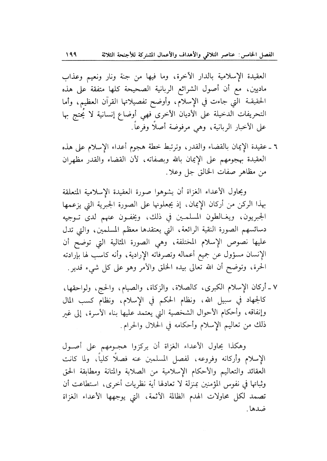 وهكذا يحاول الأعداء الغزاة أن يركزوا هجومهم على أصول الإسلام وأركانه وفروعه , لفصل المسلمين عنه فصلاً كلياً , ولما كانت العقائد والتعاليم والأحكام الإسلامية من الصلابة والمتانة ومطابقة الحق وثباتها في نفوس المؤمنين بمنزلة لا تعادلها أية نظريات أخرى , استطاعت أن تصمد لكل محاولات الهدم الظالمة الآثمة , التي يوجهها الأعداء الغزاة ضدها.