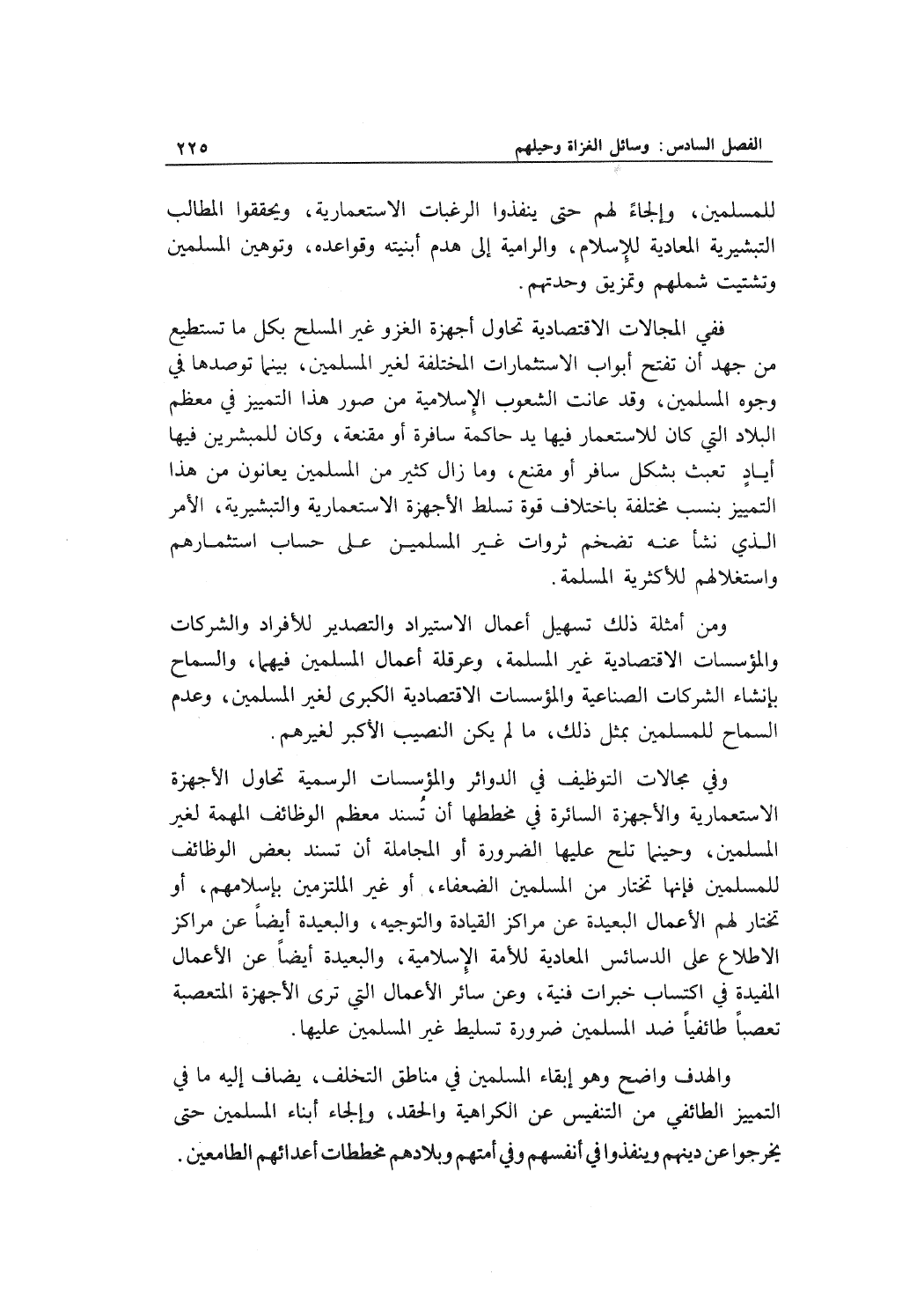للمسلمين، وإلجاءً لهم إلى حتى ينفذوا الرغبات الاستعمارية، ويحققوا المطالب التبشيرية المعادية للإسلام، والرامية إلى هدم أبنيته وقواعده، وتوهين المسلمين وتشتيت شملهم وتمزيق وحدتهم.