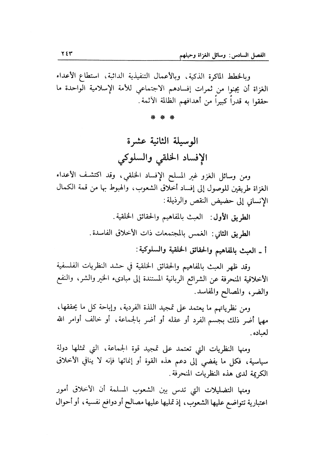 الوسيلة الثانية عشرة الإفساد الخلقي والسلوكي