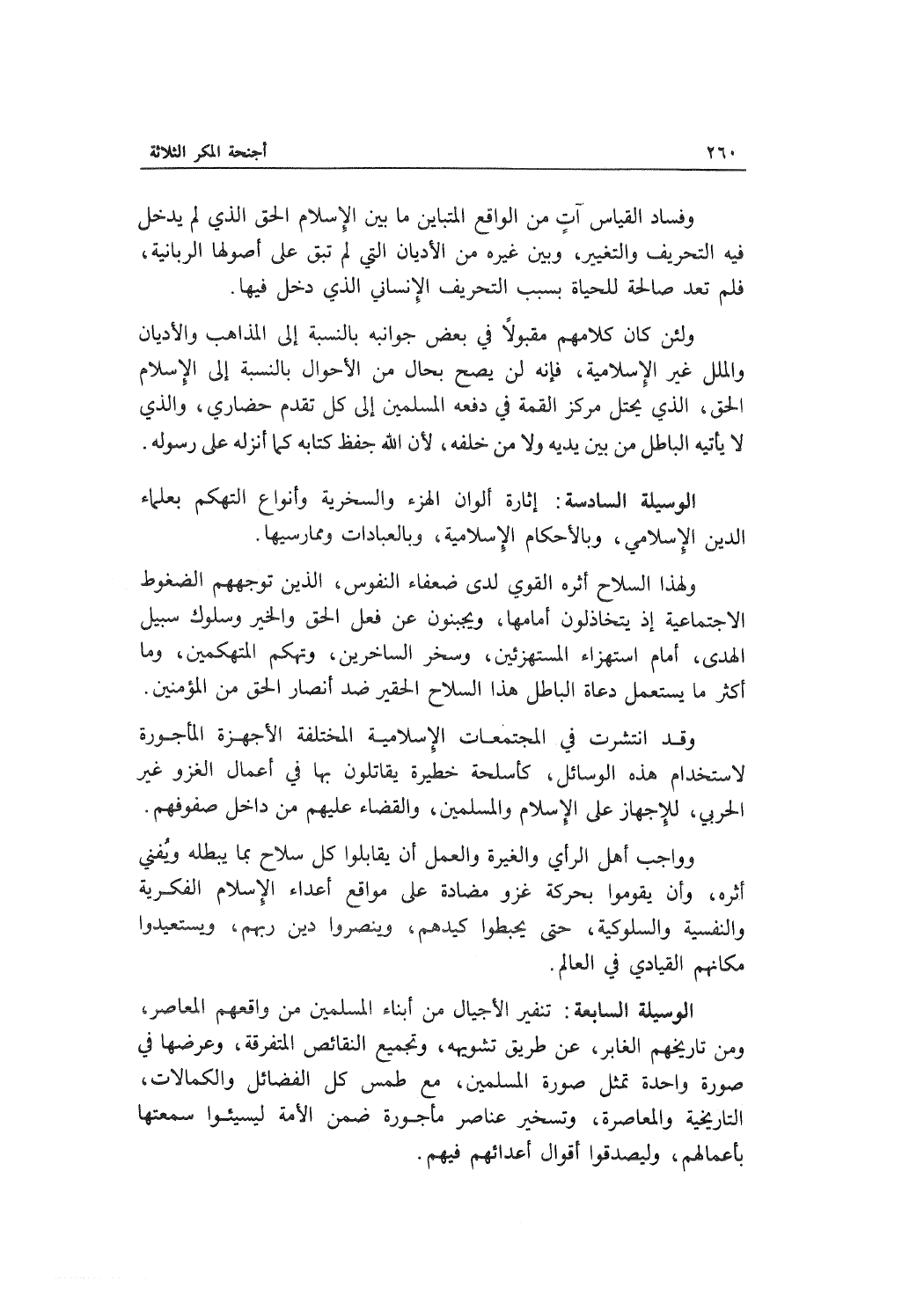 وواجب أهل الرأي والغيرة والعمل أن يقابلوا كل سلاح بما يبطله ويُفني أثره، وأن يقوموا بحركة غزو مضادة على مواقع أعداء الإسلام الفكرية والنفسية والسلوكية، حتى يحبطوا كيدهم، وينصروا دين ربهم، ويستعيدوا مكانهم القيادي في العالم.