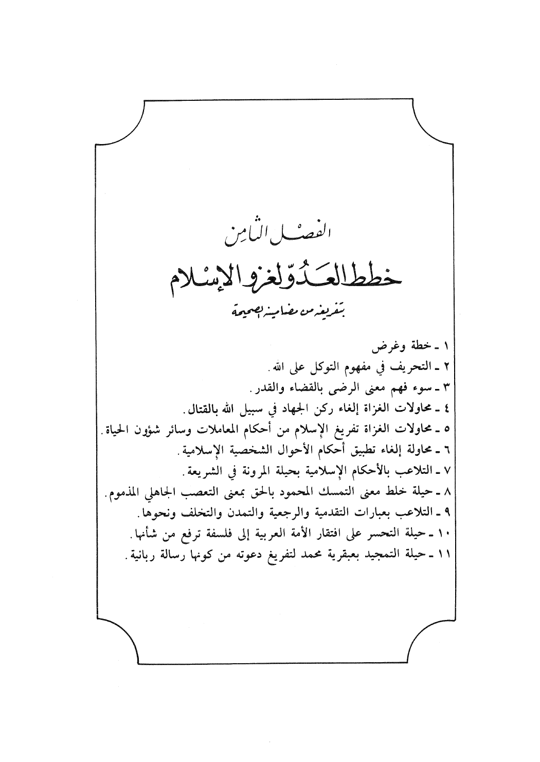 الفصْل الثامِن خطط العَدُوّ لغزو الإسْلام