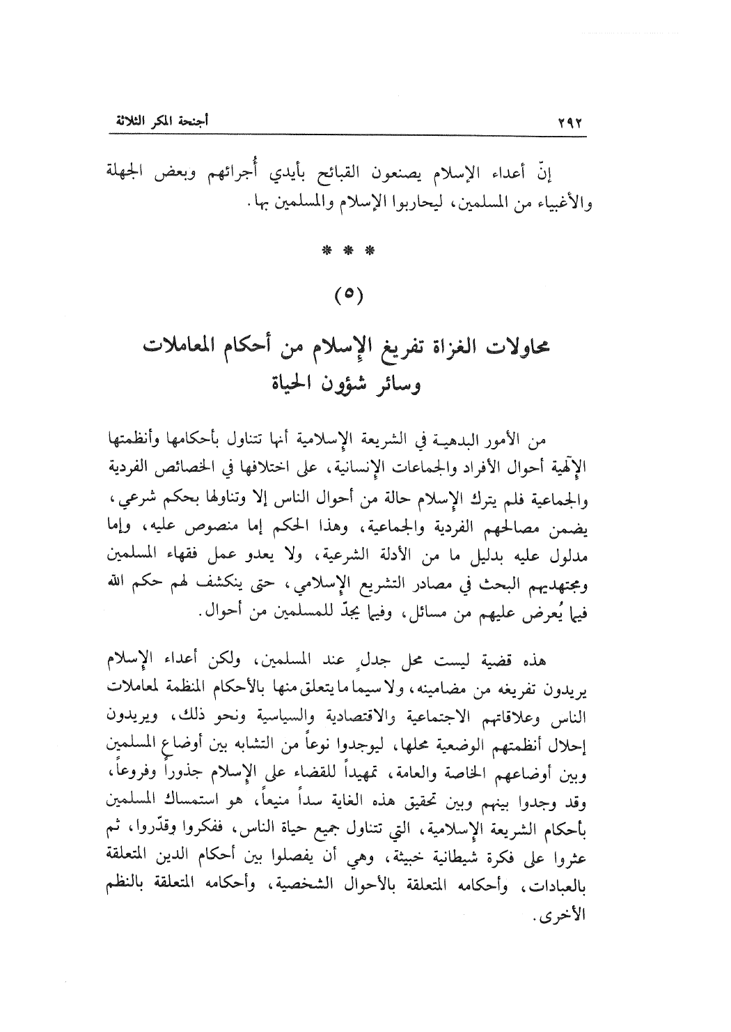 (5) محاولات الغزاة تفريغ الإسلام من أحكام المعاملات وسائر شؤون الحياة
