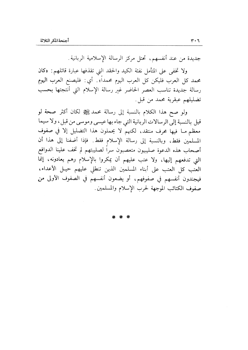 ولو صح هذا الكلام بالنسبة إلى رسالة محمد لكان أكثر صحة لو قيل بالنسبة إلى الرسالات الربانية التي جاء بها عيسى وموسى من قبل، ولا سيما معظم ما فيها محرف منتقد، لكنهم لا يحملون هذا التضليل إلا في صفوف المسلمين فقط، وبالنسبة إلى رسالة الإسلام فقط. فإذا أضفنا إلى هذا أن أصحاب هذه الدعوة صليبيون متعصبون سراً لصليبيتهم لم تخف علينا الدوافع التي تدفعهم إليها، ولا عتب عليهم أن يمكروا بالإسلام وهم يعادونه، إنما العتب كل العتب على أبناء المسلمين الذين تنطلي عليهم حيل الأعداء، فيجندون أنفسهم في صفوفهم، أو يضعون أنفسهم في الصفوف الأولى من صفوف الكتائب الموجهة لحرب الإسلام والمسلمين.