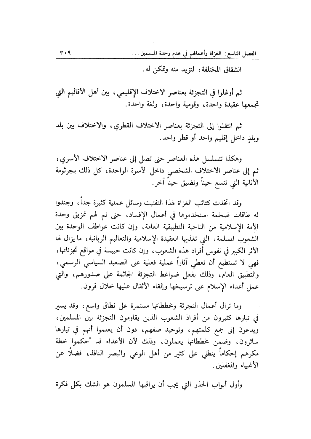 ثم أوغلوا في التجزئة بعناصر الاختلاف الإقليمي , بين أهل الأقاليم التي تجمعها عقيدة واحدة , وقومية واحدة , ولغة واحدة.