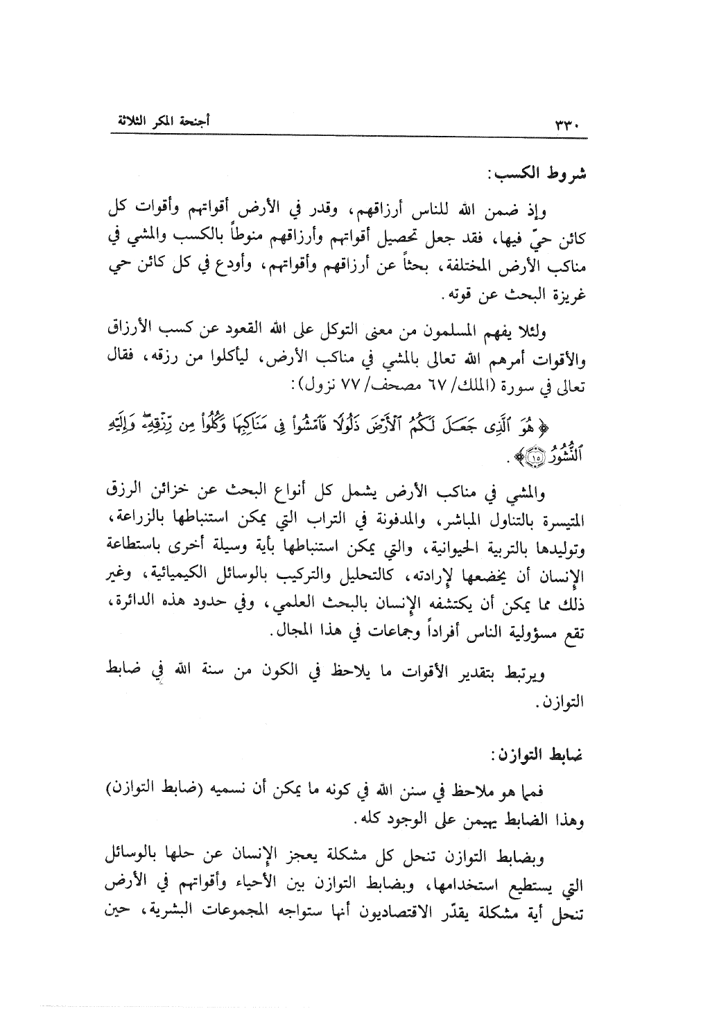 وإذ ضمن الله للناس أرزاقهم , وقدر في الأرض أقواتهم وأقوات كل كائن حي فيها , فقد جعل تحصيل أقواتهم وأرزاقهم منوطاً بالكسب والمشي في مناكب الأرض المختلفة , بحثاً عن أرزاقهم وأقواتهم , وأودع في كل كائن حي غريزة البحث عن قوته.