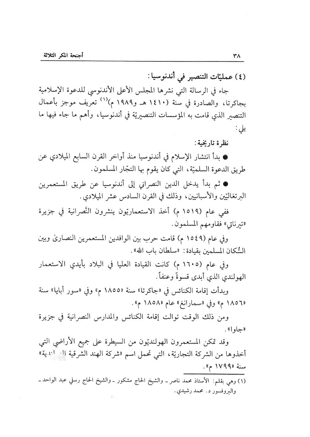 جاء في الرسالة التي نشرها المجلس الأعلى الأندنوسي للدعوة الإسلامية بجاكرتا، والصادرة في سنة (1410هـ و1989م) تعريف موجز بأعمال التنصير التي قامت به المؤسسات التنصيرية في أندونوسيا، وأهم ما جاء فيها ما يلي: