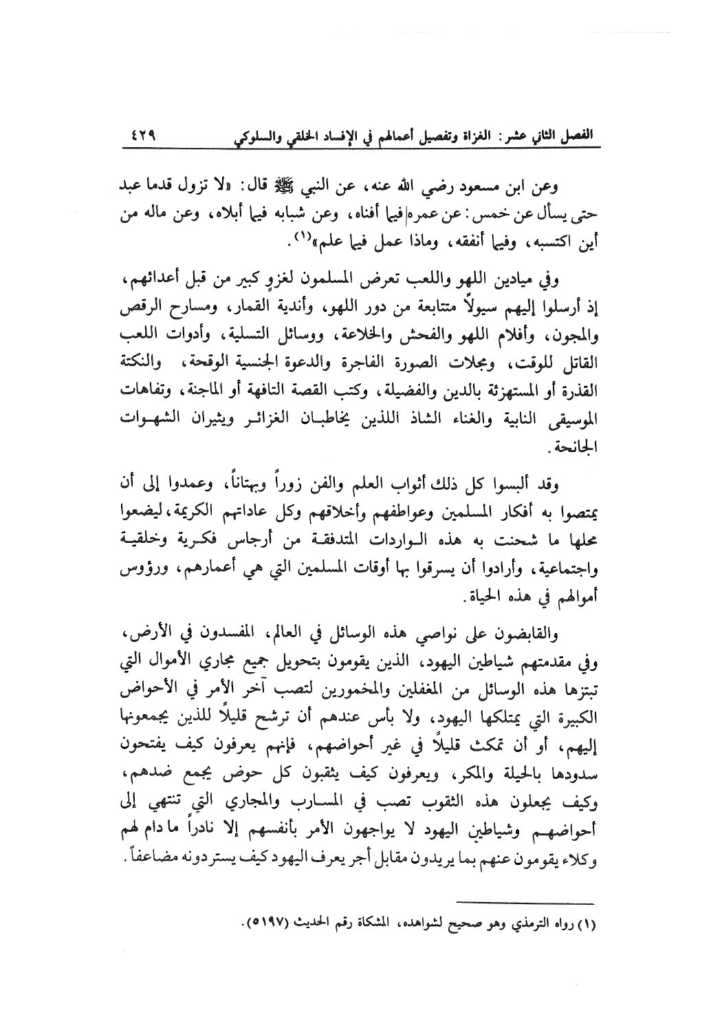 وقد ألبسوا كل ذلك أثواب العلم والفن زوراً وبهتاناً، وعمدوا إلى أن يمتصوا به أفكار المسلمين وعواطفهم وأخلاقهم وكل عاداتهم الكريمة، ليضعوا محلها ما شحنت به هذه الواردات المتدفقة من أرجاس فكرية وخلقية واجتماعية، وأرادوا أن يسرقوا بها أوقات المسلمين التي هي أعمارهم، ورؤوس أموالهم في هذه الحياة.