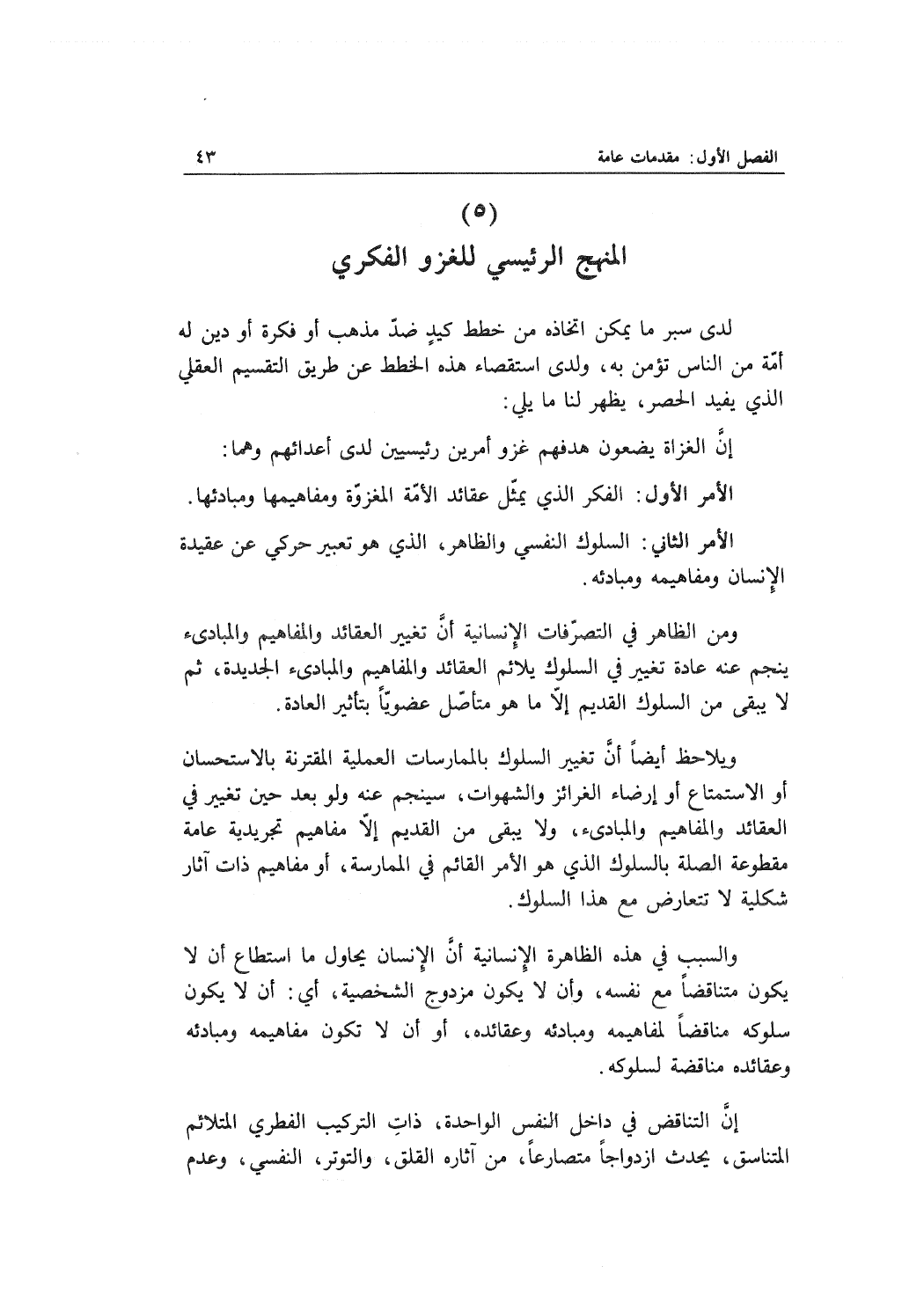 الأمر الأول: الفكر الذي يمثّل عقائد الأمّة المغزوّة ومفاهيمها ومبادئها.