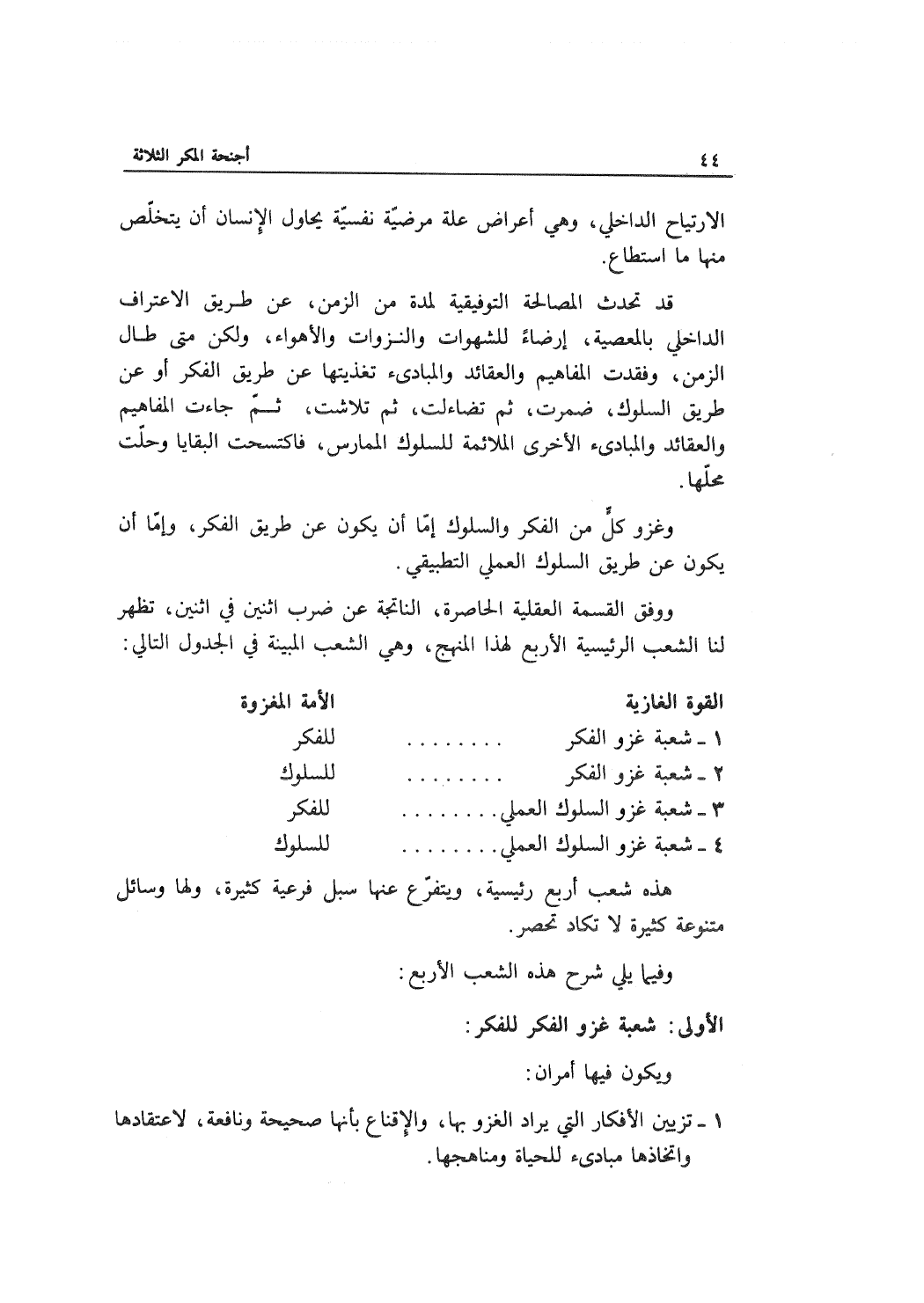 وغزو كلٍّ من الفكر والسلوك إما أن يكون عن طريق الفكر، وإما أن يكون عن طريق السلوك التطبيقي.