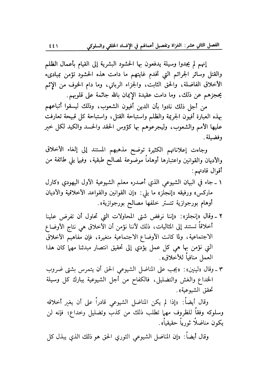 3- وقال "لينين": "يجب على المناضل الشيوعي الحق أن يتمرس بشتى ضروب الخداع والغش والتضليل، فالكفاح من أجل الشيوعية يبارك كل وسيلة تحقق الشيوعية".