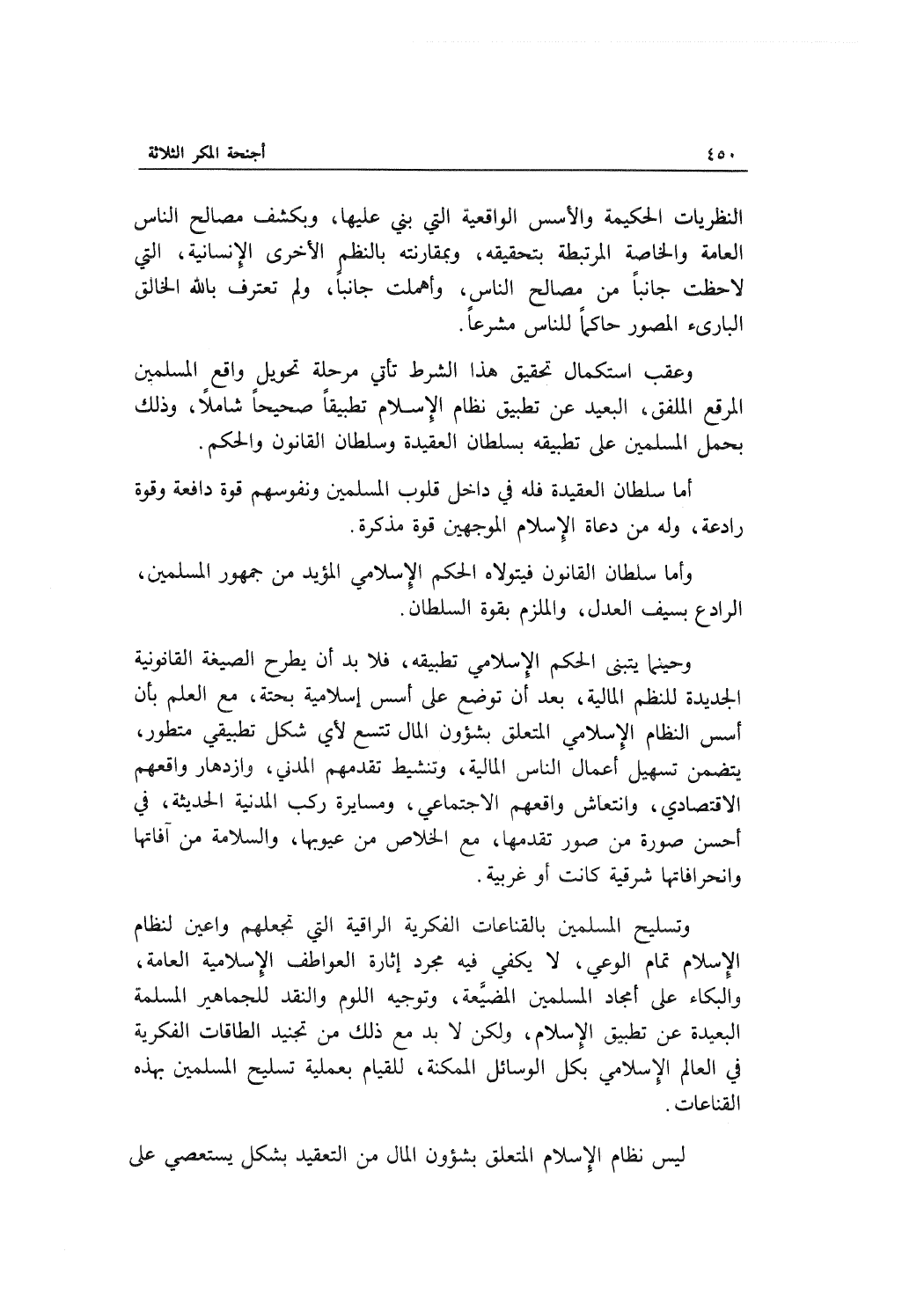 وتسليح المسلمين بالقناعات الفكرية الراقية التي تجعلهم واعين لنظام الإسلام تمام الوعي، لا يكفي فيه مجرد إثارة العواطف الإسلامية العامة، والبكاء على أمجاد المسلمين المضيَّعة، وتوجيه اللوم والنقد للجماهير المسلمة البعيدة عن تطبيق الإسلام، ولكن لا بد مع ذلك من تجنيد الطاقات الفكرية في العالم الإسلامي بكل الوسائل الممكنة، للقيام بعملية تسليح المسلمين بهذه القناعات.