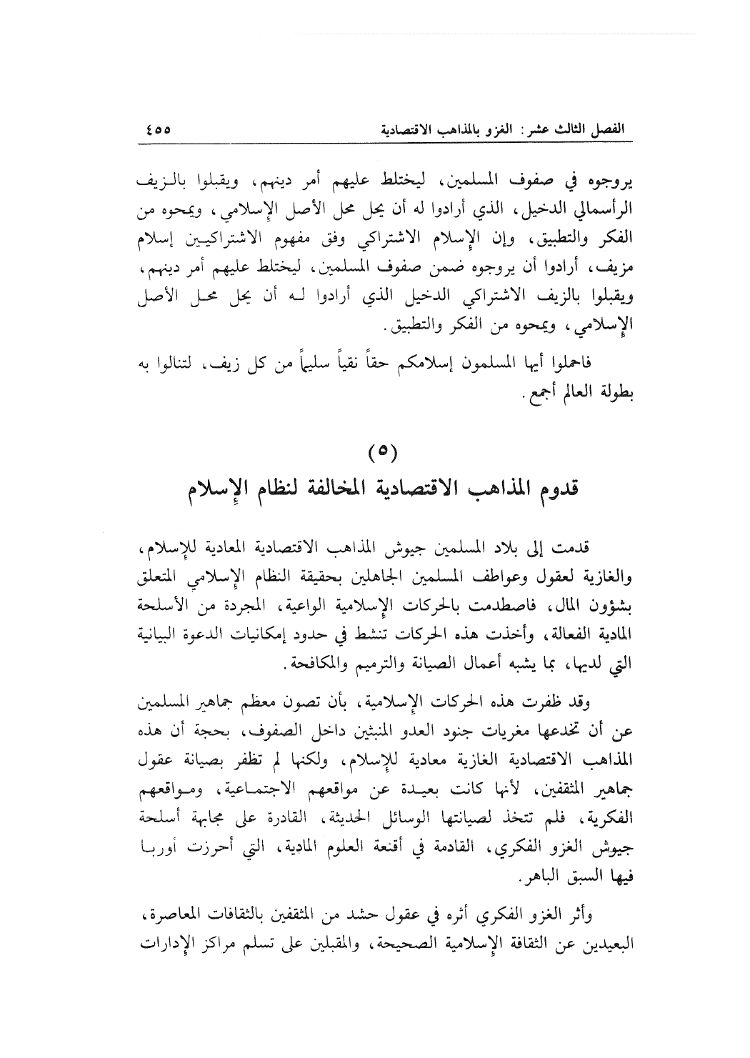 (5) قدوم المذاهب الاقتصادية المخالفة لنظام الإسلام