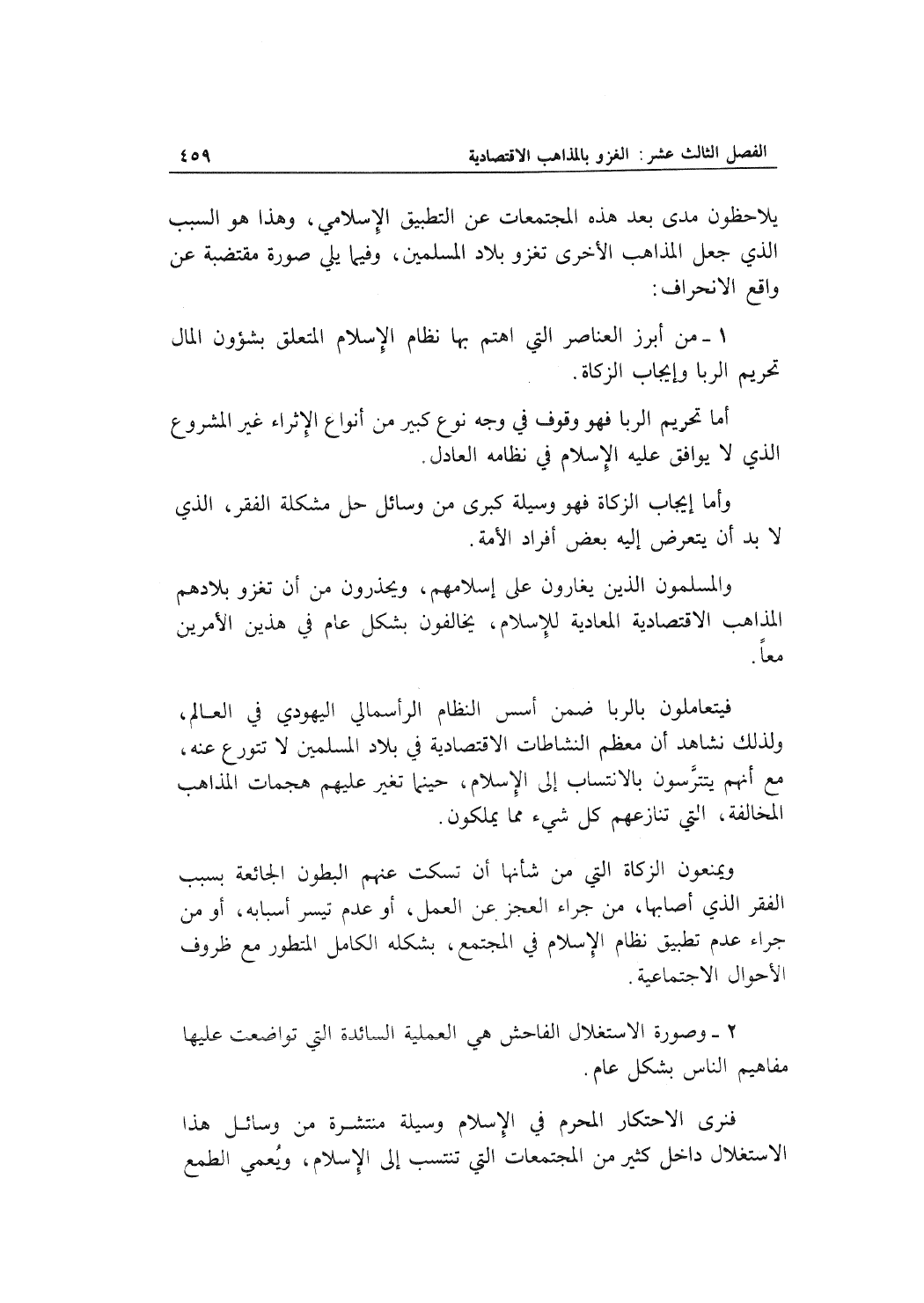 والمسلمون الذين يغارون على إسلامهم، ويحذرون من أن تغزو بلادهم المذاهب الاقتصادية المعادية للإسلام، يخالفون بشكل عام في هذين الأمرين معاً.