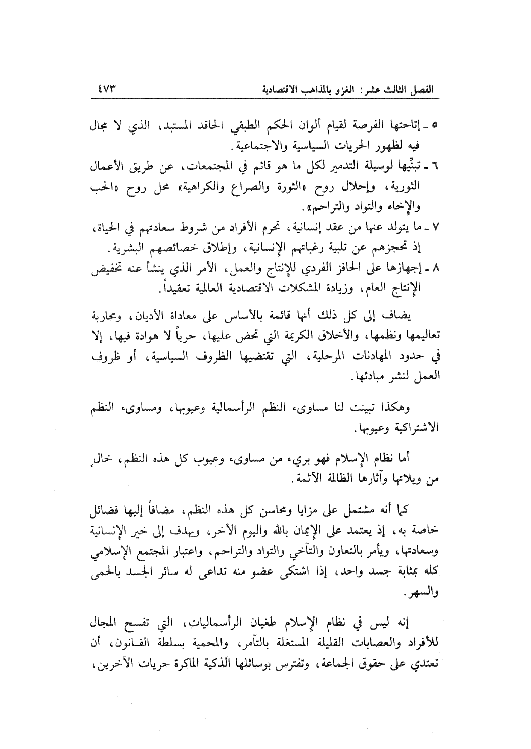 وهكذا تبينت لنا مساوئ النظم الرأسمالية وعيوبها، ومساوئ النظم الاشتراكية وعيوبها.