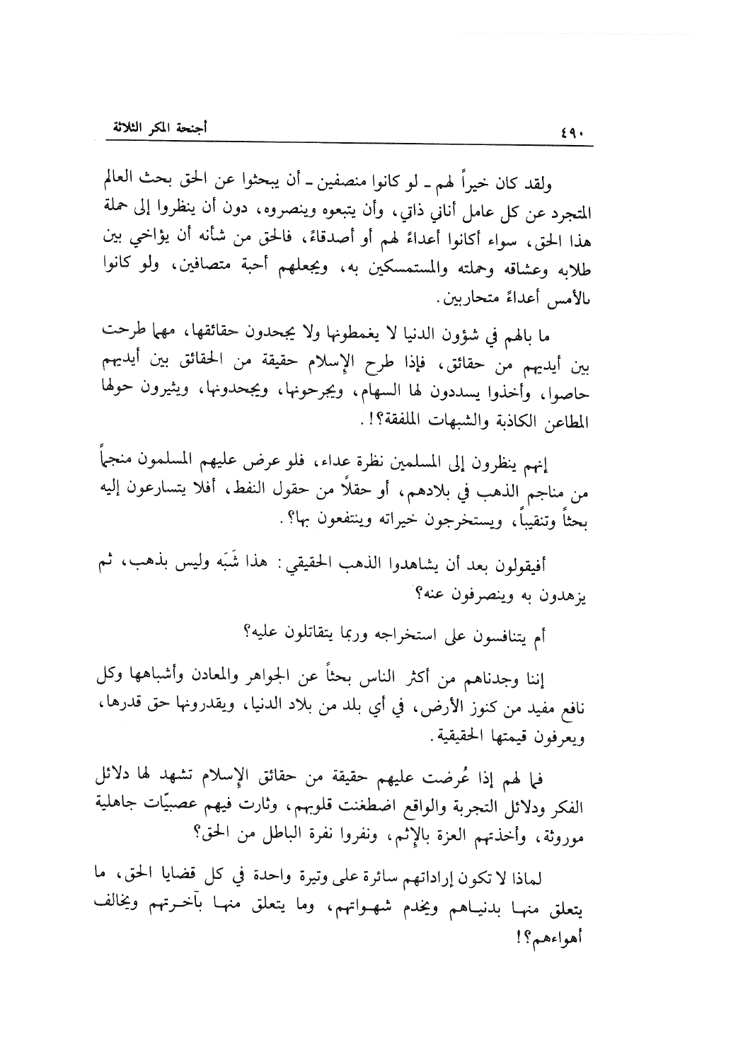 ما بالهم في شؤون الدنيا لا يغمطونها ولا يجحدون حقائقها، مهما طرحت بين أيديهم من حقائق، فإذا طرح الإسلام حقيقة من الحقائق بين أيديهم حاصوا، وأخذوا يسددون لها السهام، ويجرحونها، ويجحدونها، ويثيرون حولها المطاعن الكاذبة والشبهات الملفقة؟!.