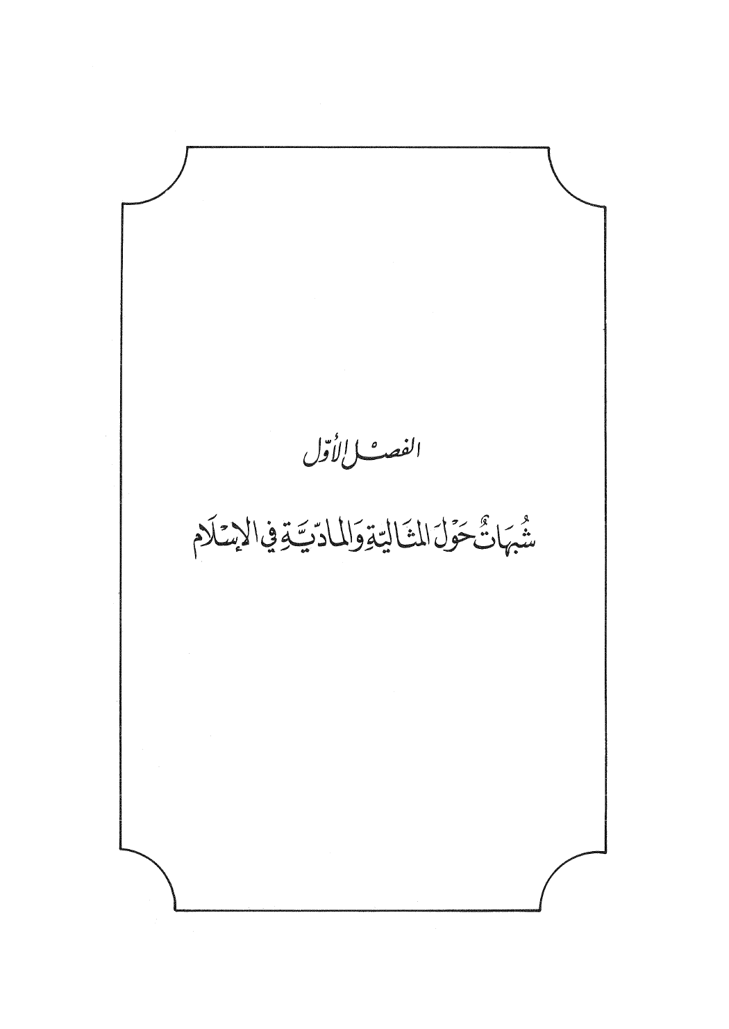 الفصْل الأوّل شُبهَاتٌ حَوْلَ المثَاليّةِ وَالمادّيَّةِ في الإسْلاَم