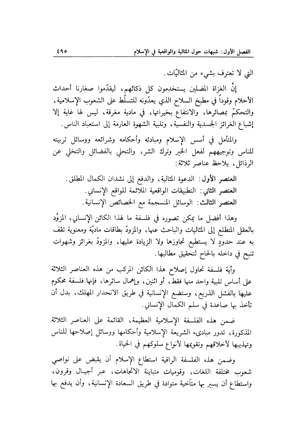 العنصر الأول: الدعوة المثالية، والدفع إلى نشدان الكمال المطلق.