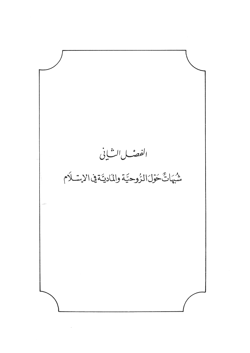 الفصْل الثاني شُبهَاتٌ حَوْلَ الرُّوحيَّة وَالمادّيَّةِ في الإسْلاَم
