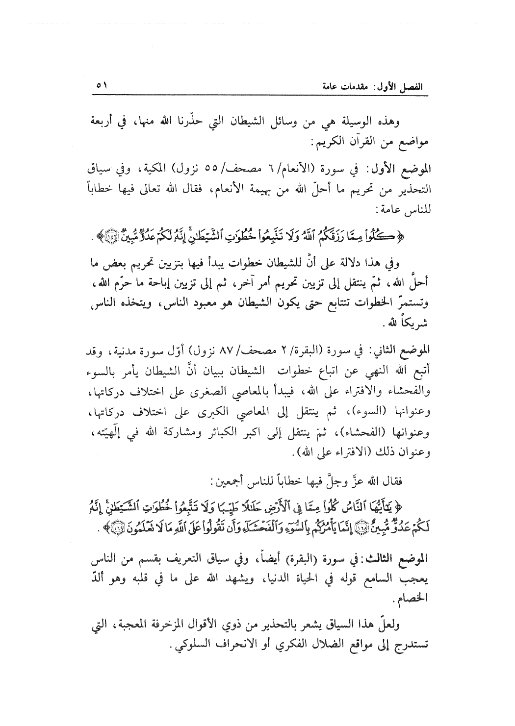 وفي هذا دلالة على أن للشيطان خطوات يبدأ فيها بتزيين تحريم بعض ما أحلَّ الله، ثم ينتقل إلى تزيين تحريم أمر آخر، ثم إلى تزيين إباحة ما حرم الله، وتستمرّ الخطوات تتتابع حتى يكون الشيطان هو معبود الناس، ويتخذه الناس شريكاً لله.