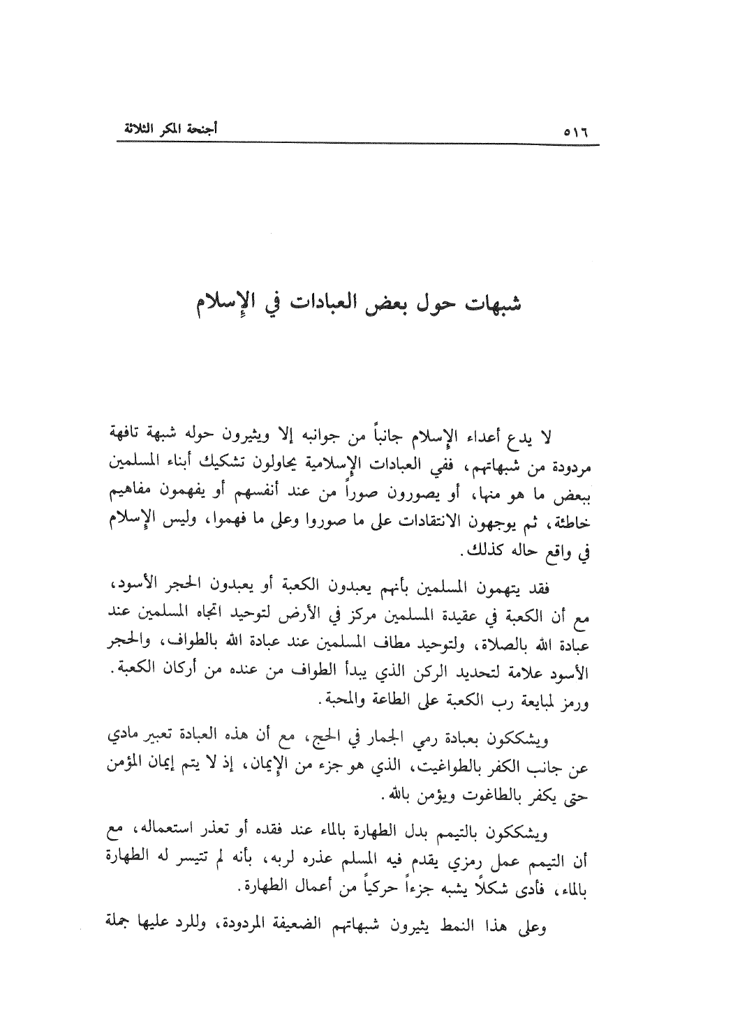 الفصْل الثالث شُبهَاتٌ حَوْلَ بَعْض العبَادات في الإسْلاَم