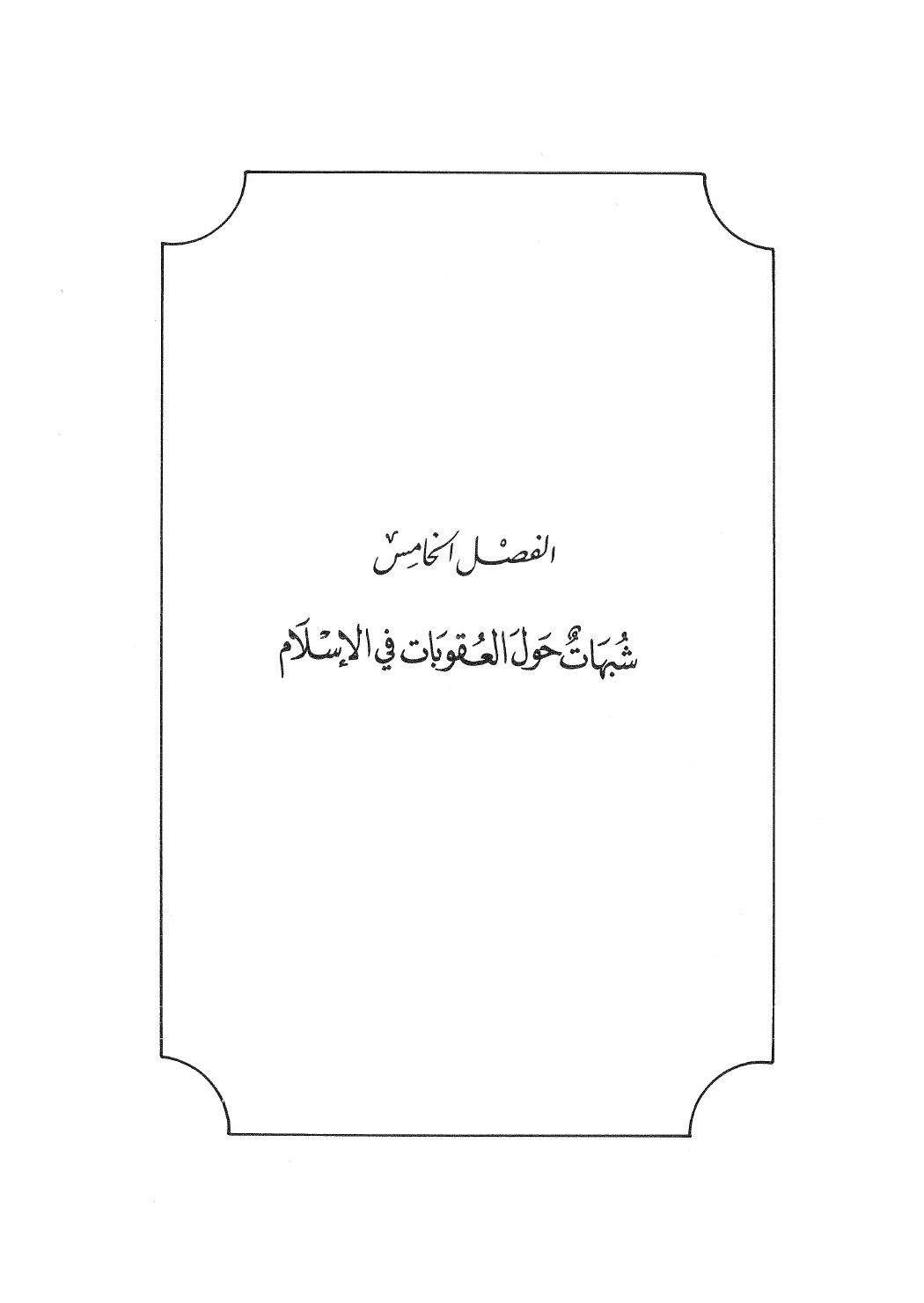 الفصْل الخامس شُبهَاتٌ حَوْلَ العُقوبَات في الإسْلاَم