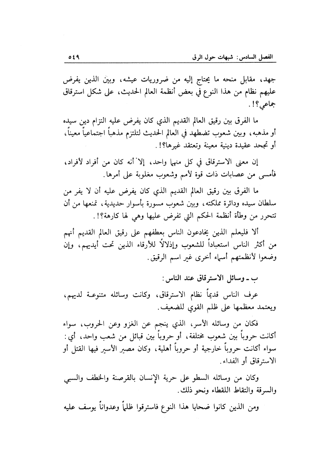 جهد، مقابل منحه ما يحتاج إليه من ضروريات عيشه، وبين الذين يفرض عليهم نظام من هذا النوع في بعض أنظمة العالم الحديث، على شكل استرقاق جماعي؟!.