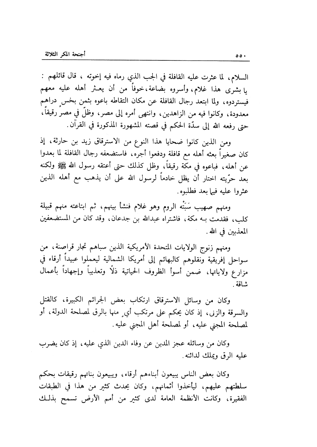ومن الذين كانوا ضحايا هذا النوع من الاسترقاق زيد بن حارثة، إذ كان صغيراً بعثه أهله مع قافلة ودفعوا أجره، فاستضعفه رجال القافلة لما بعدوا عن أهله، فباعوه في مكة رقيقاً، وظل كذلك حتى أعتقه رسول الله ولكنه بعد حريّته اختار أن يظل خادماً لرسول الله على أن يذهب مع أهله الذين عثروا عليه فيما بعد فطلبوه.