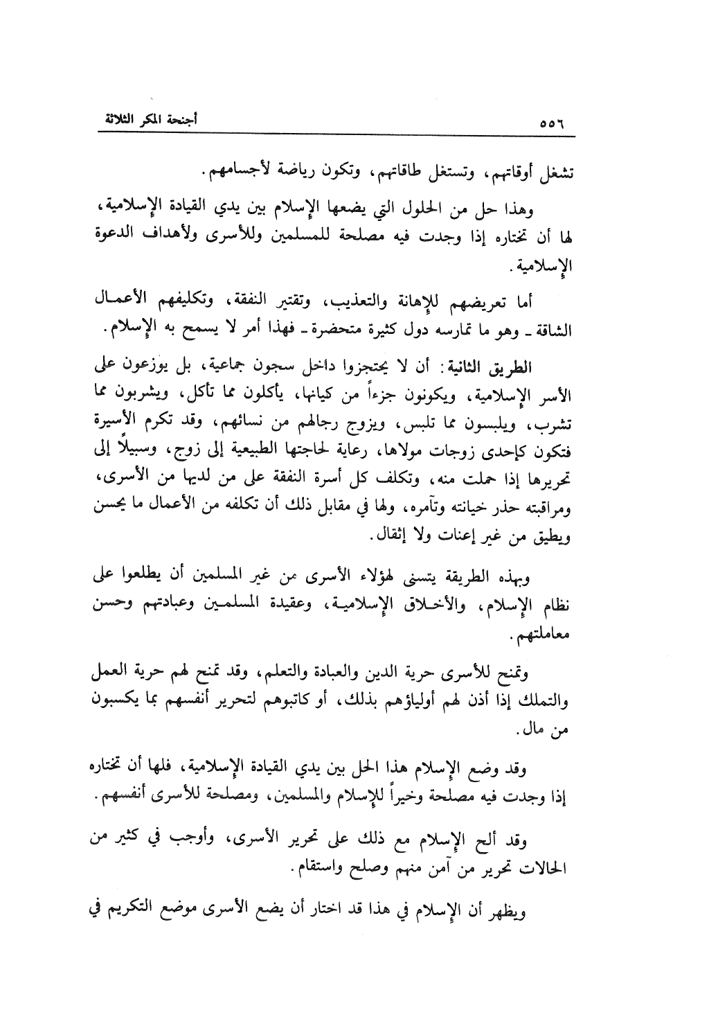 ويظهر أن الإسلام في هذا قد اختار أن يضع الأسرى موضع تكريم في