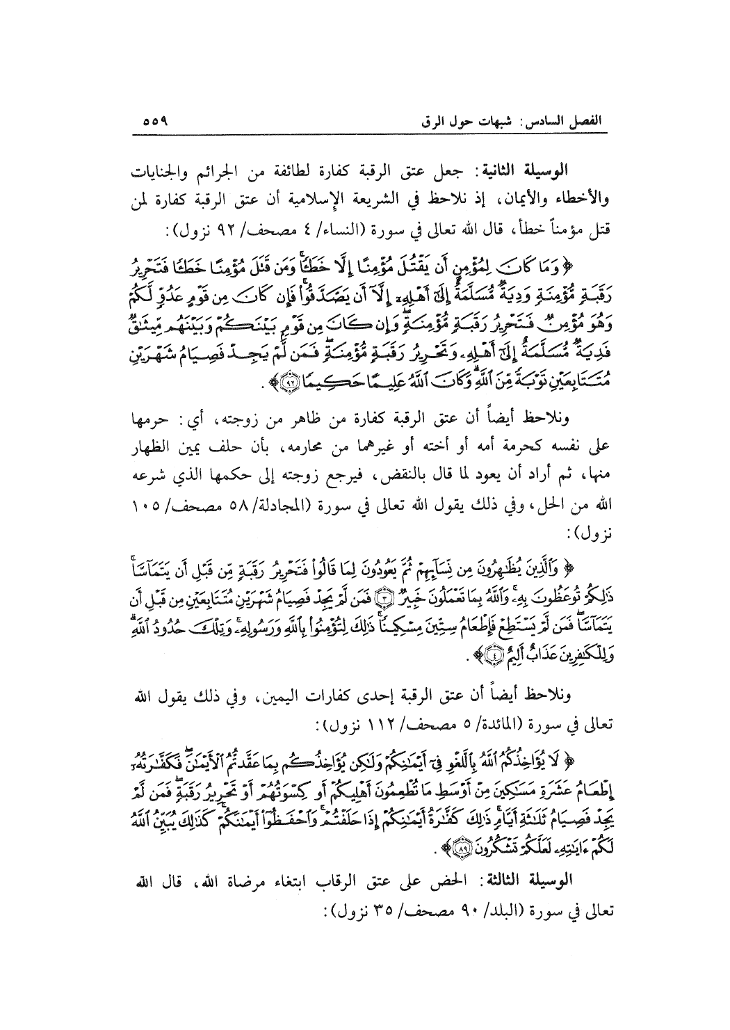 ونلاحظ أيضاً أن عتق الرقبة إحدى كفارات اليمين، وفي ذلك يقول الله تعالى في سورة (المائدة/5 مصحف/112 نزول) :