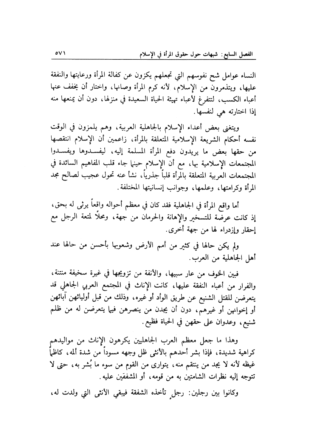 ويتغنى بعض أعداء الإسلام بالجاهلية العربية، وهم يلمزون في الوقت نفسه أحكام الشريعة الإسلامية المتعلقة بالمرأة، زاعمين أن الإسلام انتقصها من حقها بعض ما يريدون دفع المرأة المسلمة إليه، ليفسدوها ويفسدوا المجتمعات الإسلامية بها، مع أن الإسلا حينما جاء قلب المفاهيم السائدة في المجتمعات العربية المتعلقة بالمرأة قلباً جذرياً، نشأ عنه تحول عجيب لصالح مجد المرأة وكرامتها، وعلمها، وجوانب إنسانيتها المختلفة.