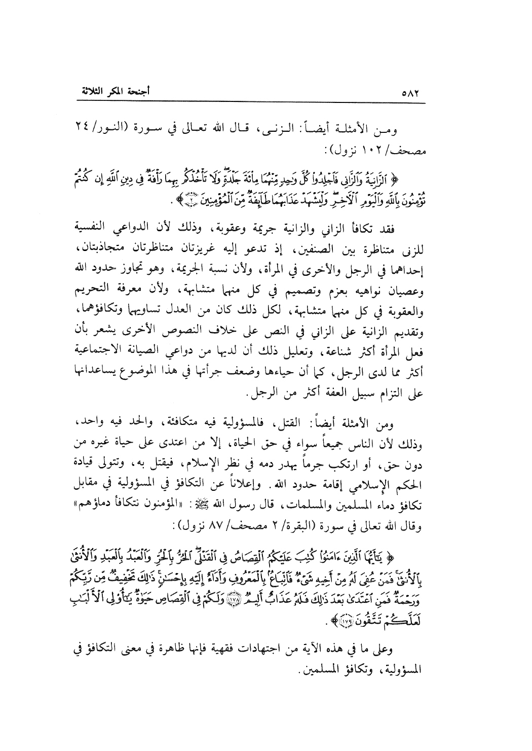 ومن الأمثلة أيضاً: الزنى، قال الله تعالى في سورة (النور/24 مصحف/102 نزول) :