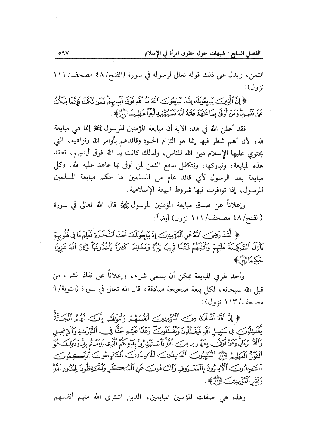 {إِنَّ الَّذِينَ يُبَايِعُونَكَ إِنَّمَا يُبَايِعُونَ اللَّهَ يَدُ اللَّهِ فَوْقَ أَيْدِيهِمْ فَمَنْ نَكَثَ فَإِنَّمَا يَنْكُثُ عَلَى نَفْسِهِ وَمَنْ أَوْفَى بِمَا عَاهَدَ عَلَيْهُ اللَّهَ فَسَيُؤْتِيهِ أَجْراً عَظِيماً} .
