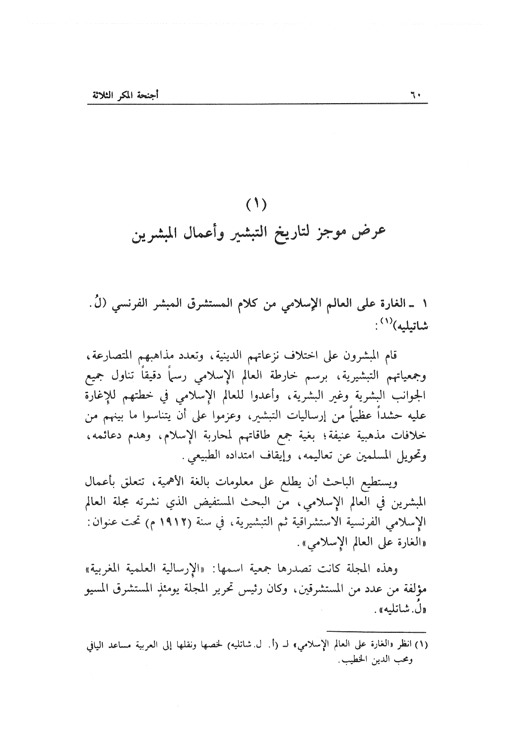1- الغارة على العالم الإسلامي من كلام المستشرق المبشر الفرنسي (لُ. شاتيليه) :