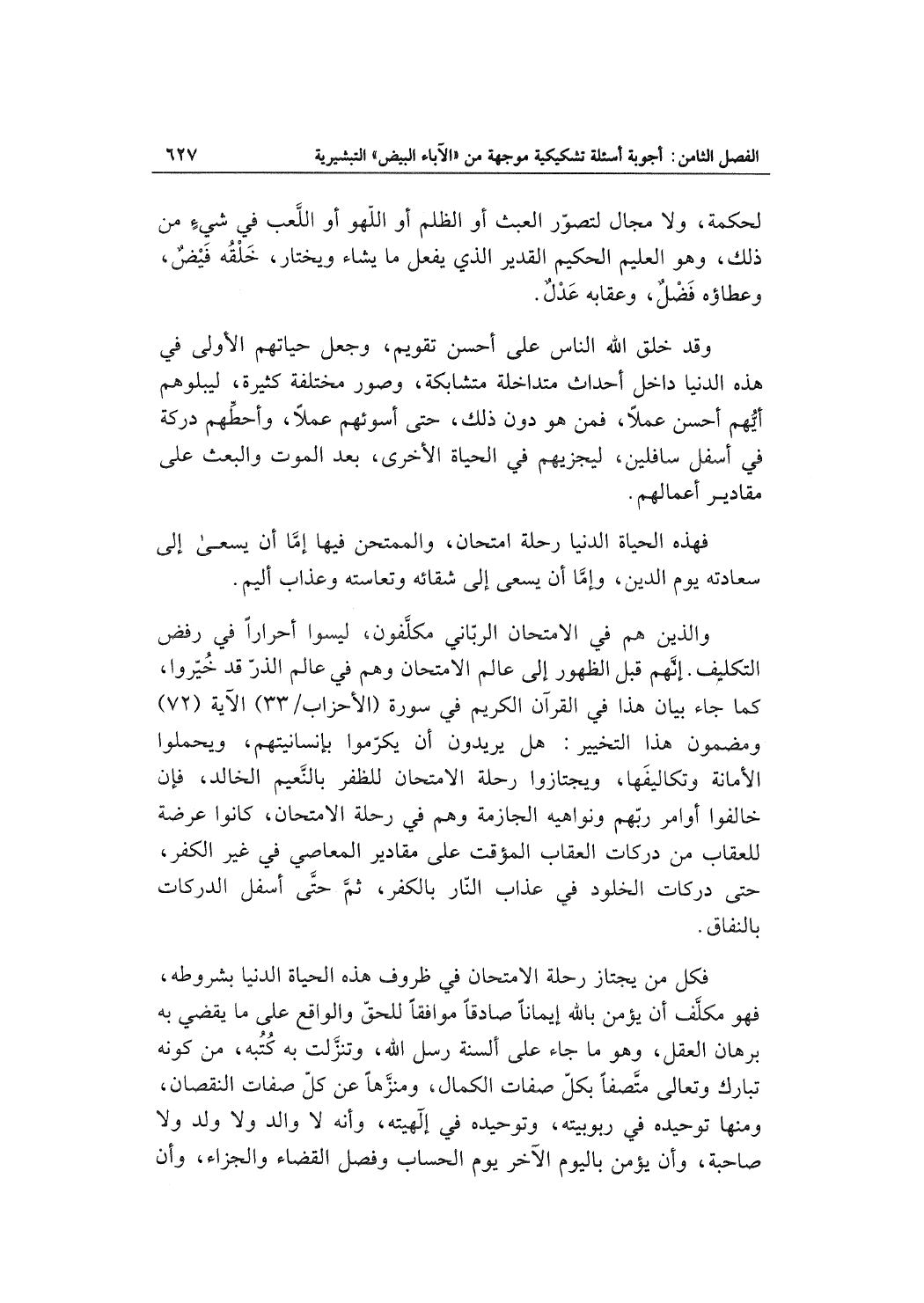 والذين هم في الامتحان الربّاني مكلَّفون، ليسوا أحراراً في رفض التكليف. إنَّهم قبل الظهور إلى عالم الامتحان وهم في عالم الذرّ قد خُيّروا، كما جاء بيان هذا في القرآن الكريم في سورة (الأحزاب/33) الآية (72) ومضمون هذا التخيير: هل يريدون أن يكرّموا بإنسانيتهم، ويحملوا الأمانة وتكاليفَها، ويجتازوا رحلة الامتحان للظفر بالنَّعيم الخالد، فإن خالفوا أوامر ربّهم ونواهيه الجازمة وهم في رحلة الامتحان، كانوا عرضة للعقاب من دركات العقاب المؤقت على مقادير المعاصي في غير الكفر، حتى دركات الخلود في عذاب النّار بالكفر، ثمَّ حتَّى أسفل الدركات بالنفاق.