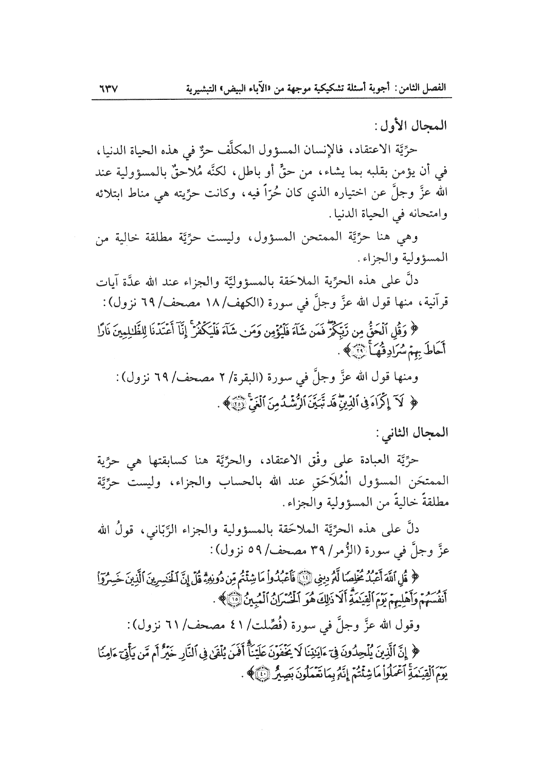 دلَّ على هذه الحرِّيَّة الملاحَقة بالمسؤولية والجزاء الربَّاني، قولُ الله عزَّ وجلَّ في سورة (الزُّمر/39 مصحف/59 نزول) :