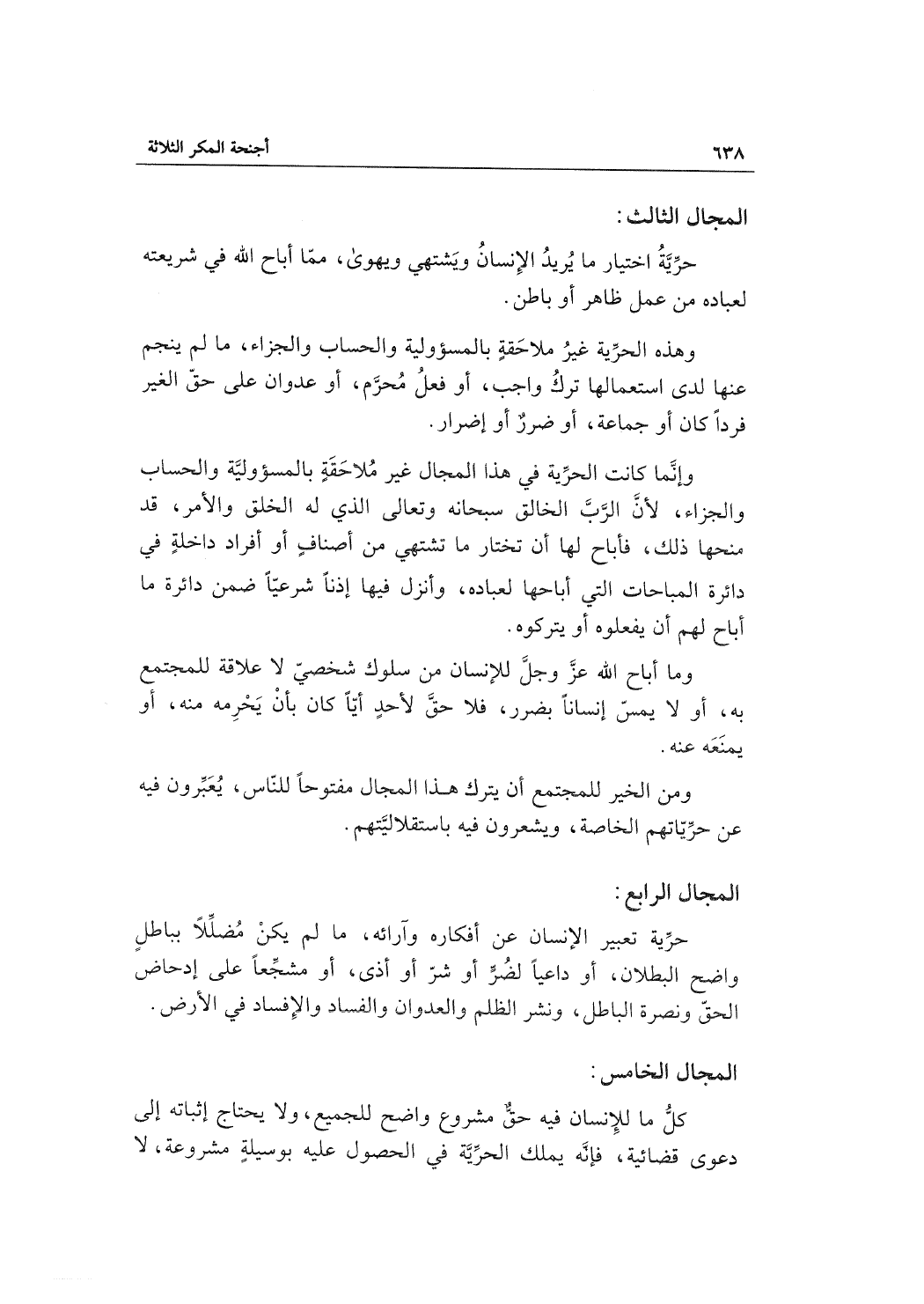 وهذه الحرِّيَّة غيرُ ملاحَقةٍ بالمسؤولية والحساب والجزاء، ما لم ينجم عنها لدى استعمالها تركُ واجب، أو فعلُ مُحرَّم، أو عدوان على حقّ الغير فرداً كان أو جماعة، أو ضررٌ أو إضرار.