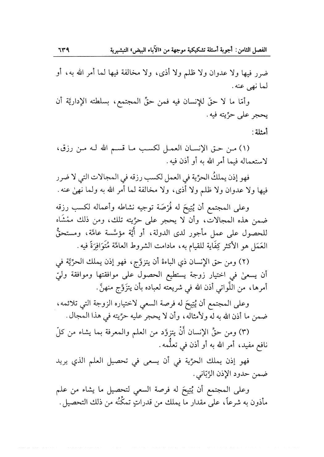 (3) ومن حقِّ الإنسان أَنْ يتزوَّد من العلم والمعرفة بما يشاء من كلّ نافع مفيد، أمر الله به أو أذن في تعلُّمه.