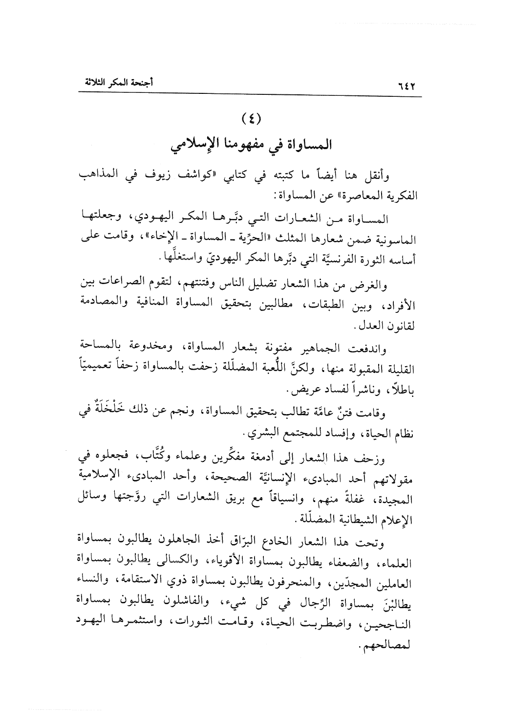 وأنقل هنا أيضاً ما كتبته في كتابي "كواشف زيوف في المذاهب الفكرية المعاصرة" عن المساواة: