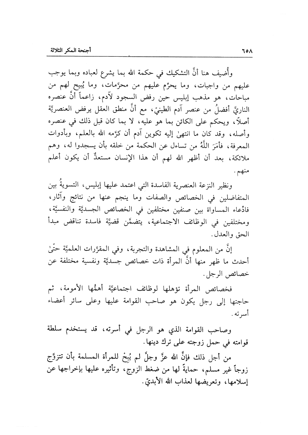 إنَّ من المعلوم في المشاهد والتجربة، وفي المقرَّرات العلميَّة حتّى أحدث ما ظهر منها أنَّ المرأة ذات خصائص جسديَّة ونفسية مختلفة عن خصائص الرجل.