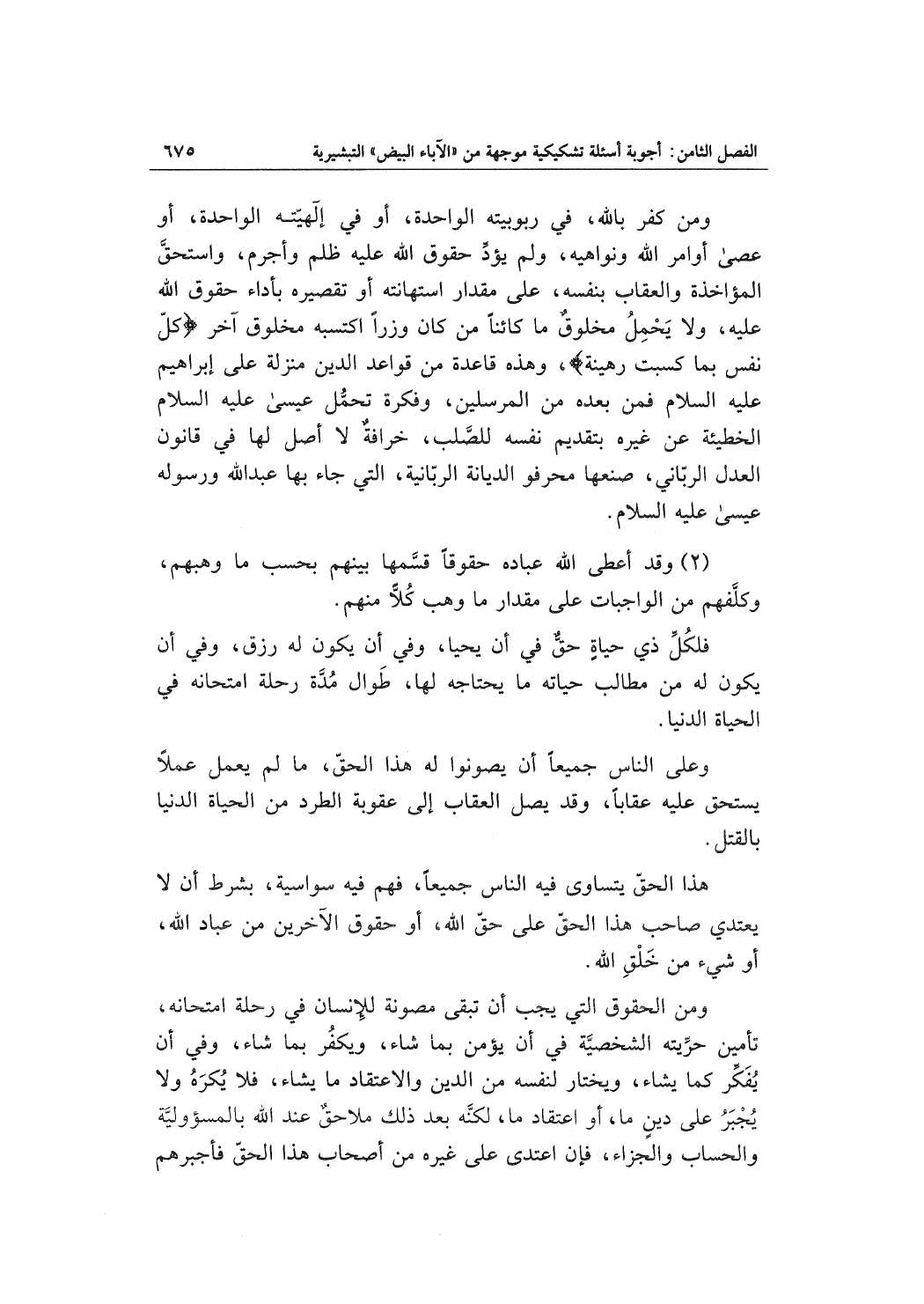 (2) وقد أعطى الله عباده حقوقاً قسمها بينهما بحسب ما وهبهم، وكلفهم من الواجبات على مقدار ما وهب كلاً منهم.