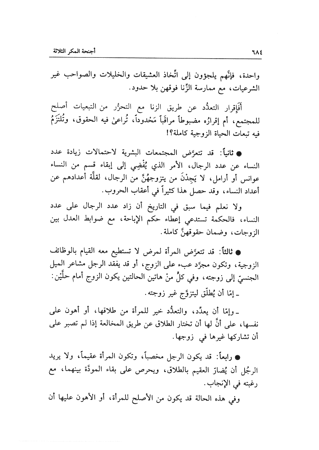 أفإقرار التعدد عن طريق الزنا مع التحرر من التبعيات أصلح للمجتمع، أم إقراره مضبوطاً مراقباً محدوداً، تراعى فيه الحقوق، وتلتزم فيه تبعات الحياة الزوجية كاملة؟!