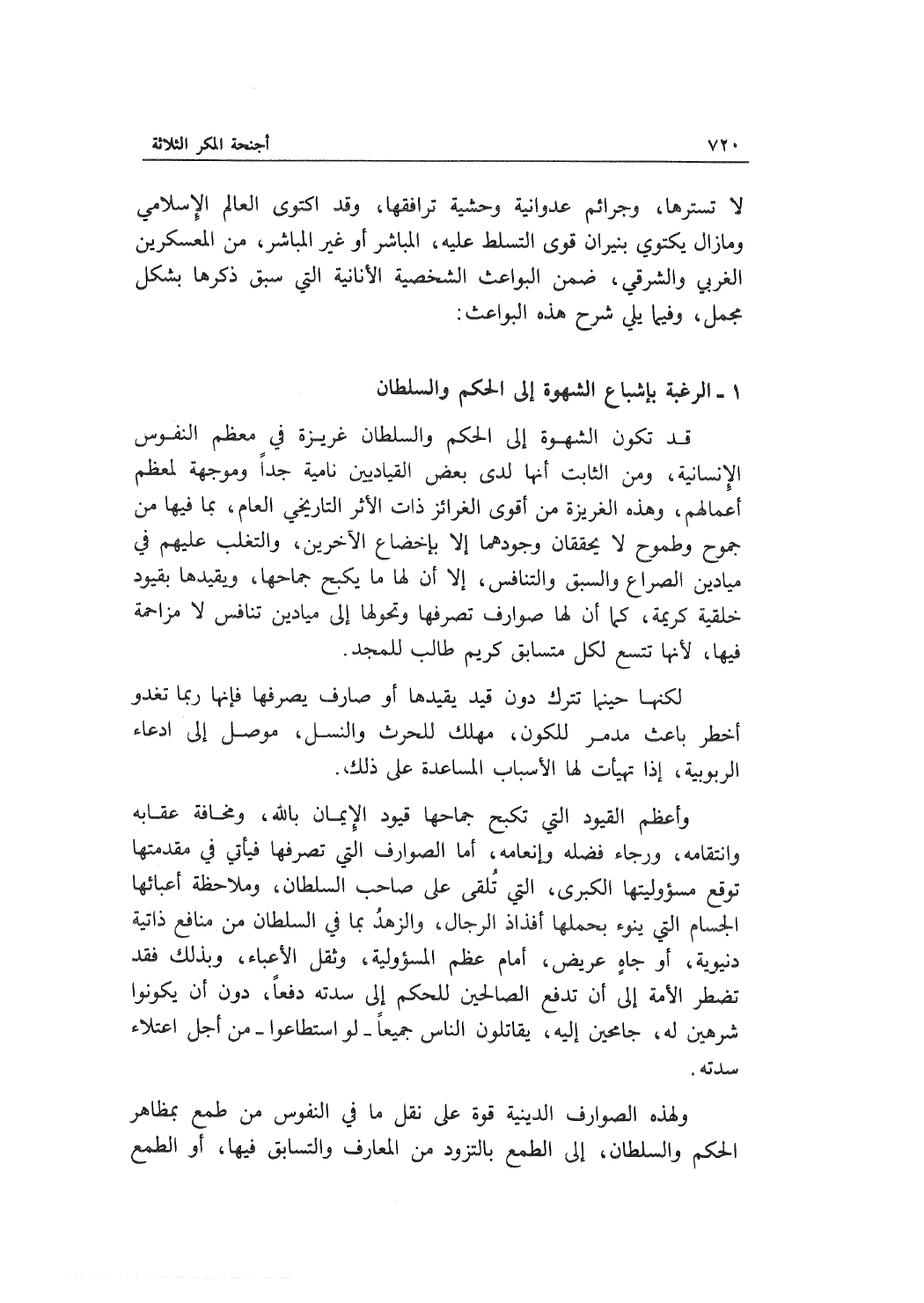 وأعظم القيود التي تكبح جماحها قيود الإيمان بالله، ومخافة عقابه وانتقامه، ورجاء فضله وإنعامه، أما الصوارف التي تصرفها فيأتي في مقدمتها توقع مسؤوليتها الكبرى، التي تُلقى على صاحب السلطان، وملاحظة أعبائها الجسام التي ينوء بحملها أفذاذ الرجال، والزهدُ بما في السلطان من منافع ذاتية دنيوية، أو جاهٍ عريض، أمام عظم المسؤولية، وثقل الأعباء، وبذلك فقد تضطر الأمة إلى أن تدفع الصالحين للحكم إلى سدته دفعاً، دون أن يكونوا شرهين له، جامحين إليه، يقاتلون الناس جميعاً - لو استطاعوا - من أجل اعتلاء سدته.
