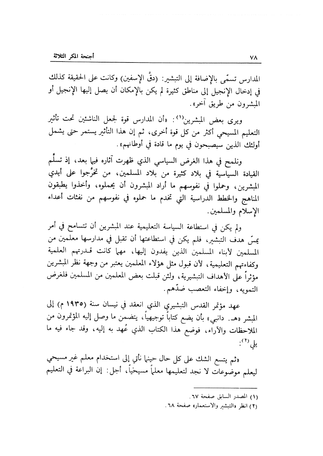 عهد مؤتمر القدس التبشيري الذي انعقد في نيسان سنة (1935م) إلى المبشر "هـ دانبي" بأن يضع كتاباً توجيهياً، يتضمن ما وصل إليه المؤتمرون من الملاحظات والآراء، فوضع هذا الكتاب الذي عُهد به إليه،وقد جاء فيه ما يلي: